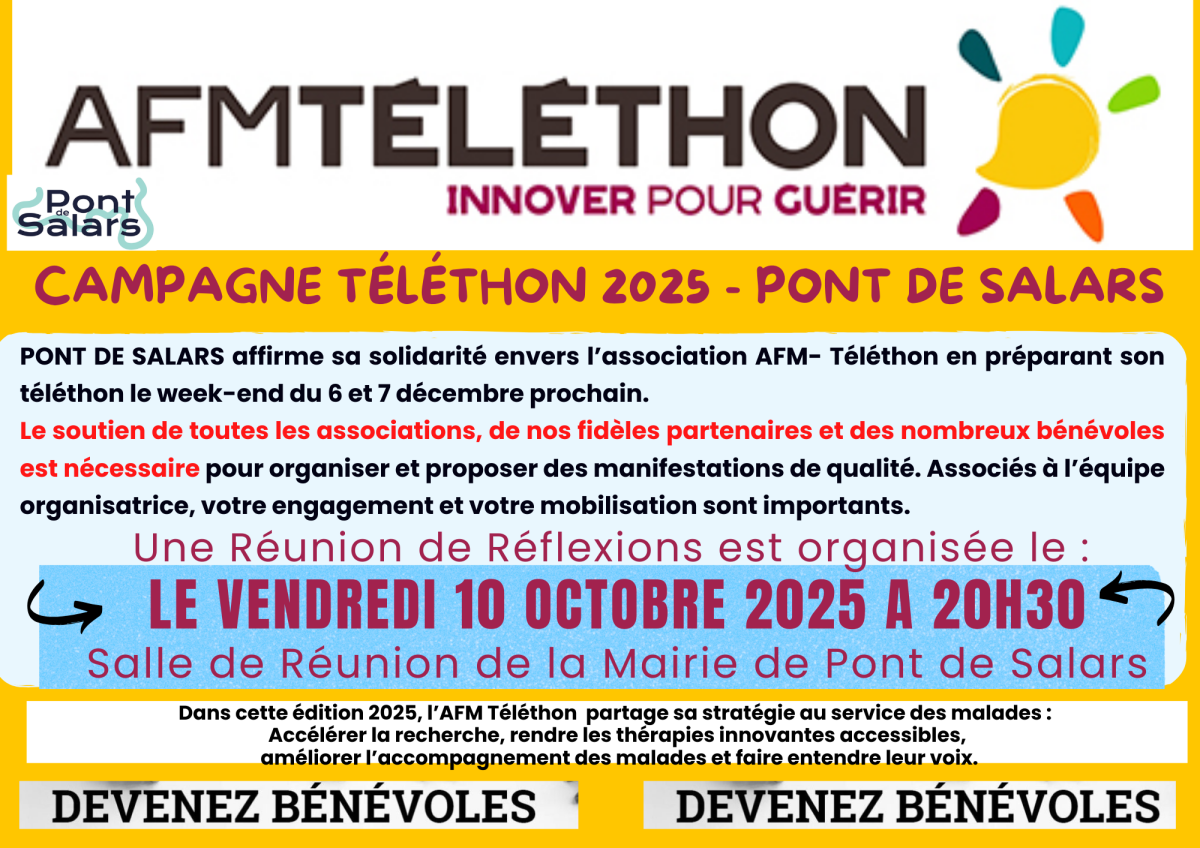 Réunion de réflexion Vendredi 10 octobre à 20h30 Salle de Réunion de la Mairie de Pont de Salars